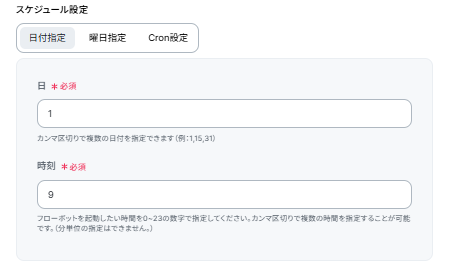 日付指定やCron設定をすることもできます。希望にあわせて設定してください。