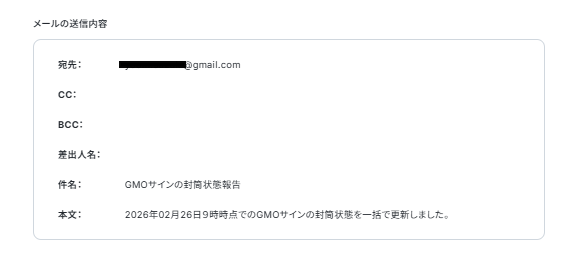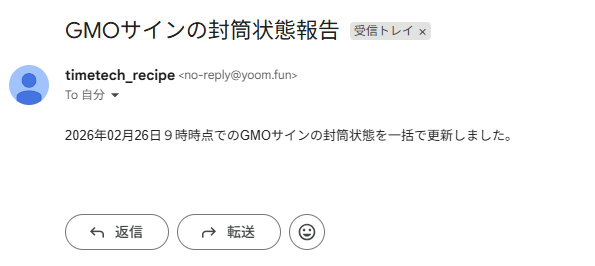 - 指定した日時に自動でGMOサインの封筒状態が更新されるため、手作業での確認や転記に費やしていた時間を別の業務に充てられます