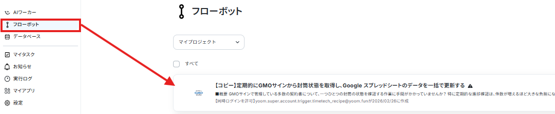 また、コピーしたテンプレートはフローボットに保存されているので、ここからも開くことができます。