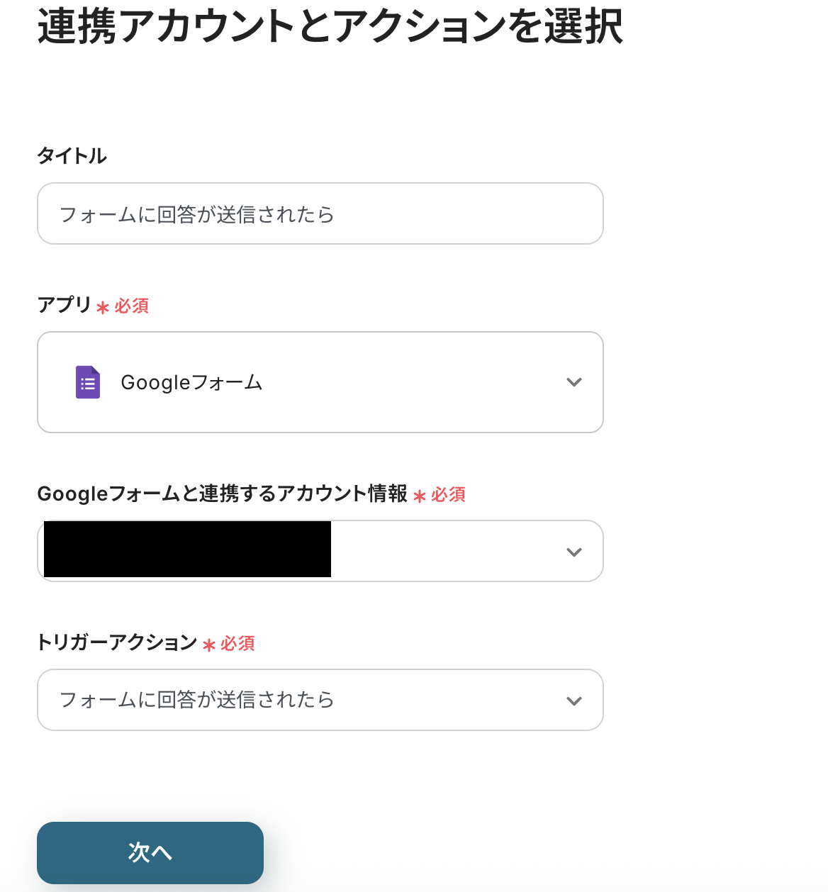 連携アカウントとアクションを選択