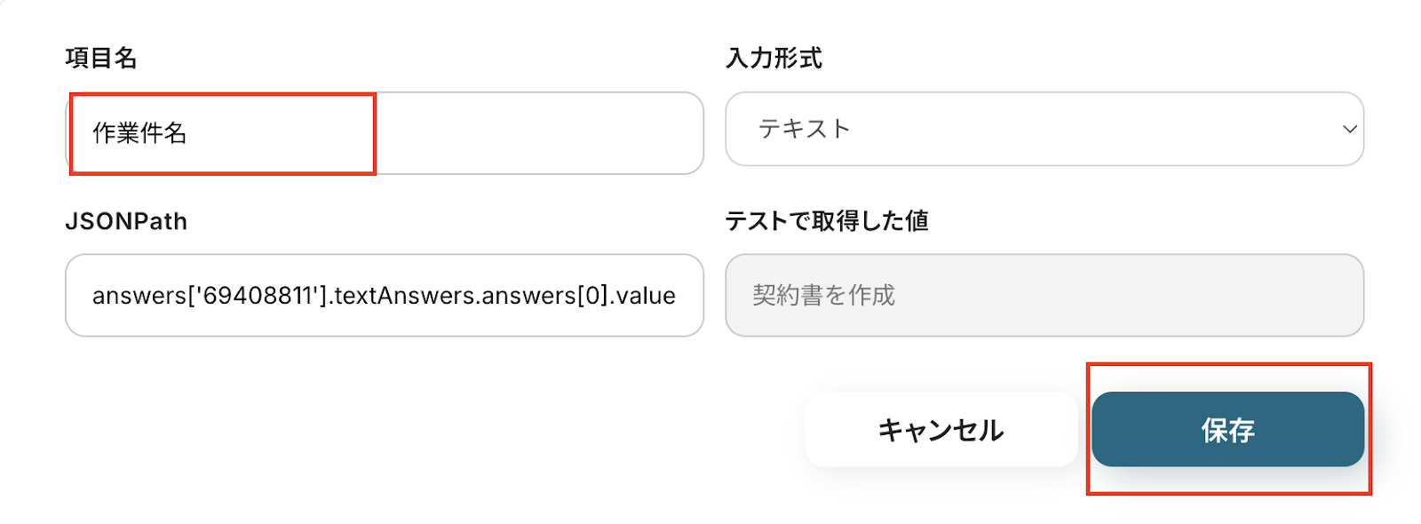 項目名を変更し、保存をクリックします。