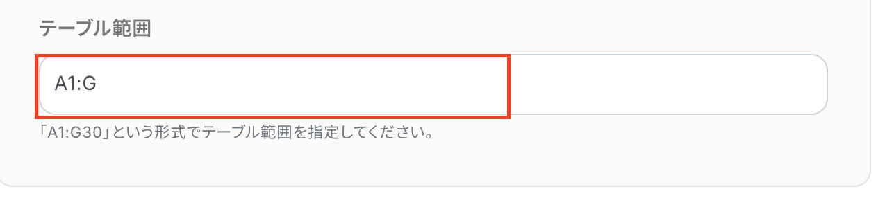 Google スプレッドシートに登録されている項目名と等しいレコード情報を取得する設定をします。