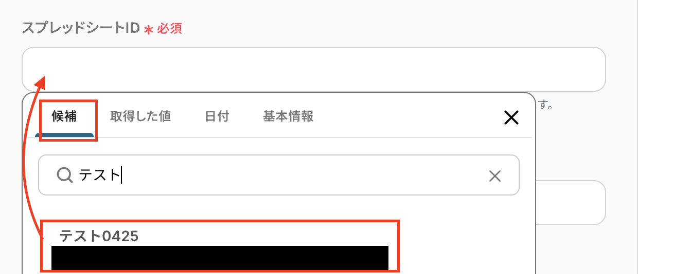 スプレッドシートIDは候補から選択します。