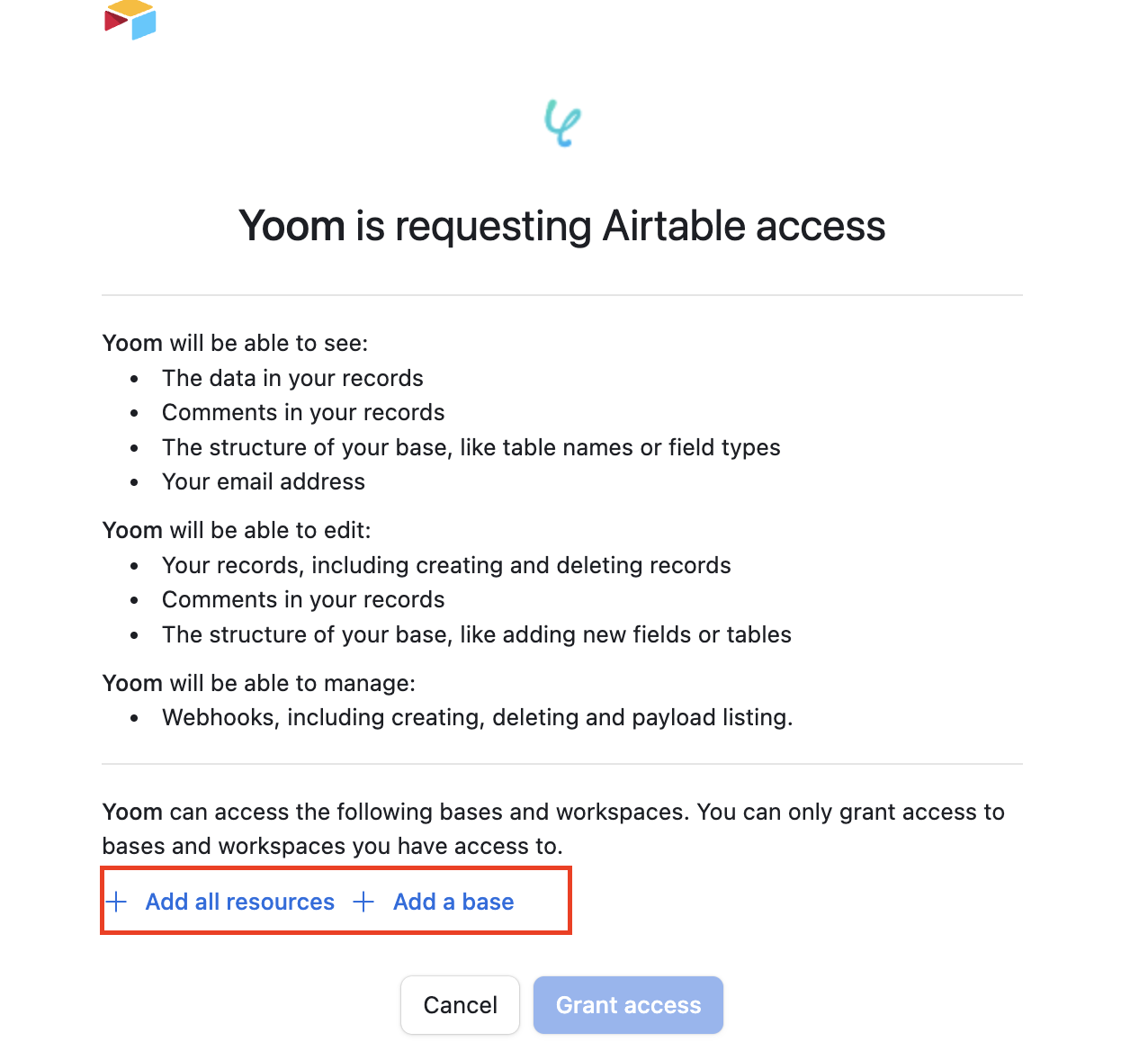 ・Airtable、GoogleスプレッドシートのそれぞれとYoomを連携してください。