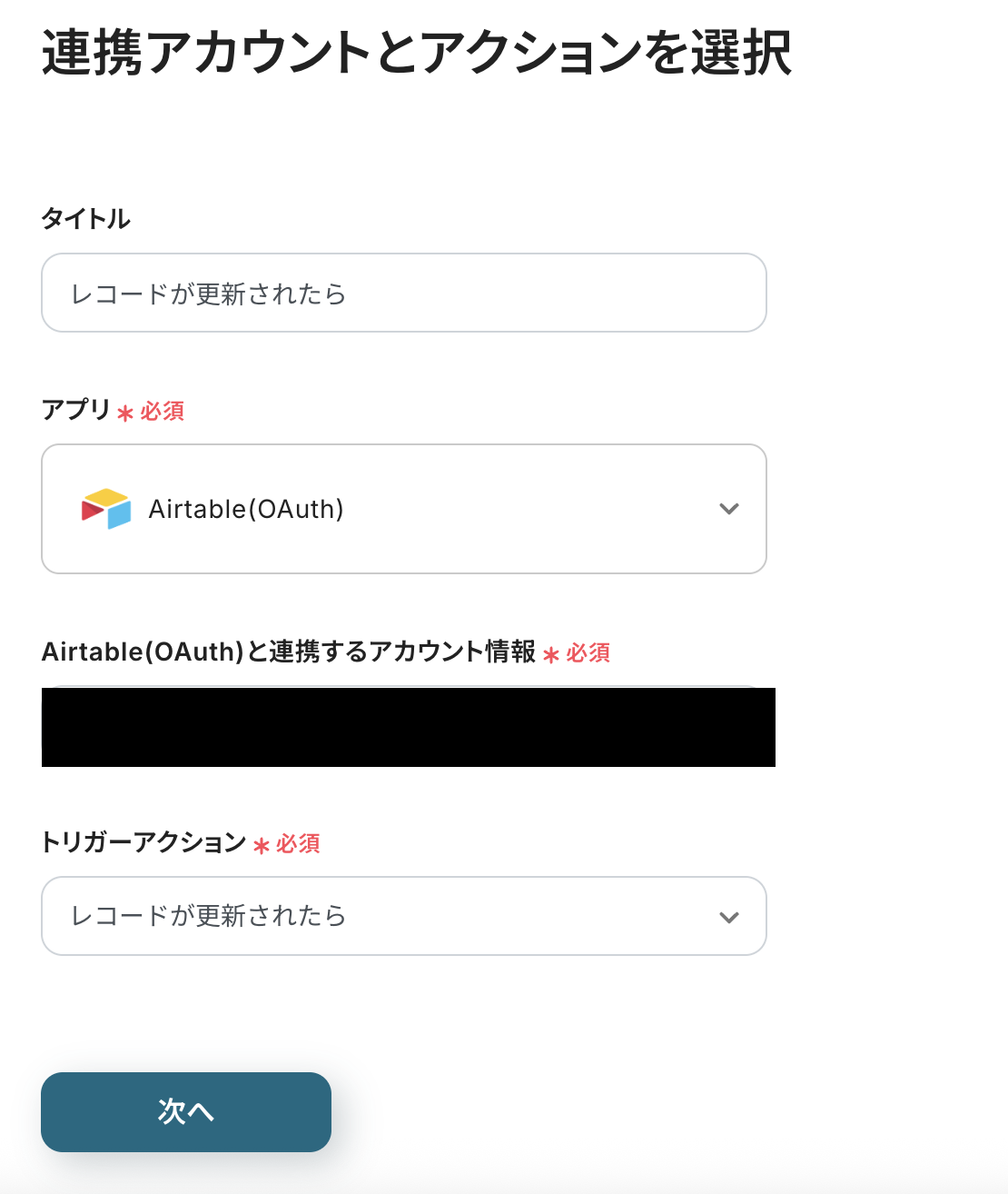 今回はAirtableに登録しているステータスが更新されたという想定で設定していきます。