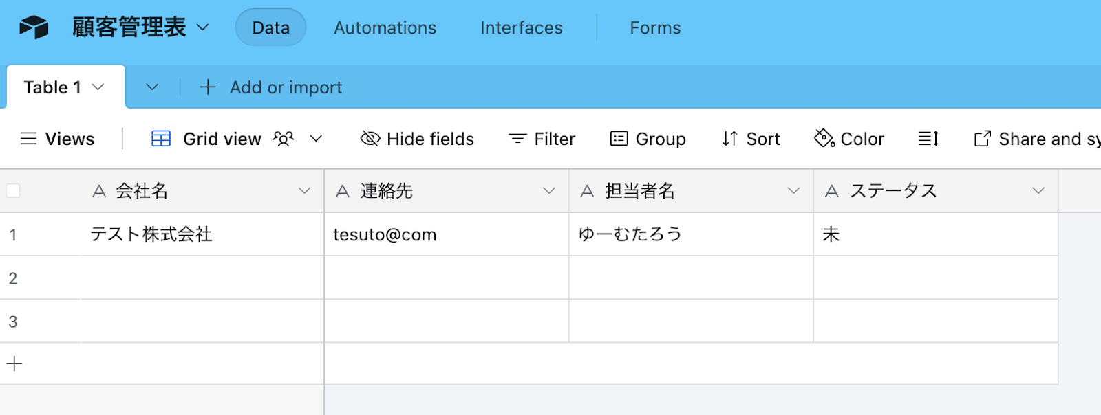 Airtableに新しいデータが追加されると自動的にGoogle スプレッドシートにも同じ情報が反映されるため、手動でのデータ入力の手間を省き最新情報を一元管理できます。
