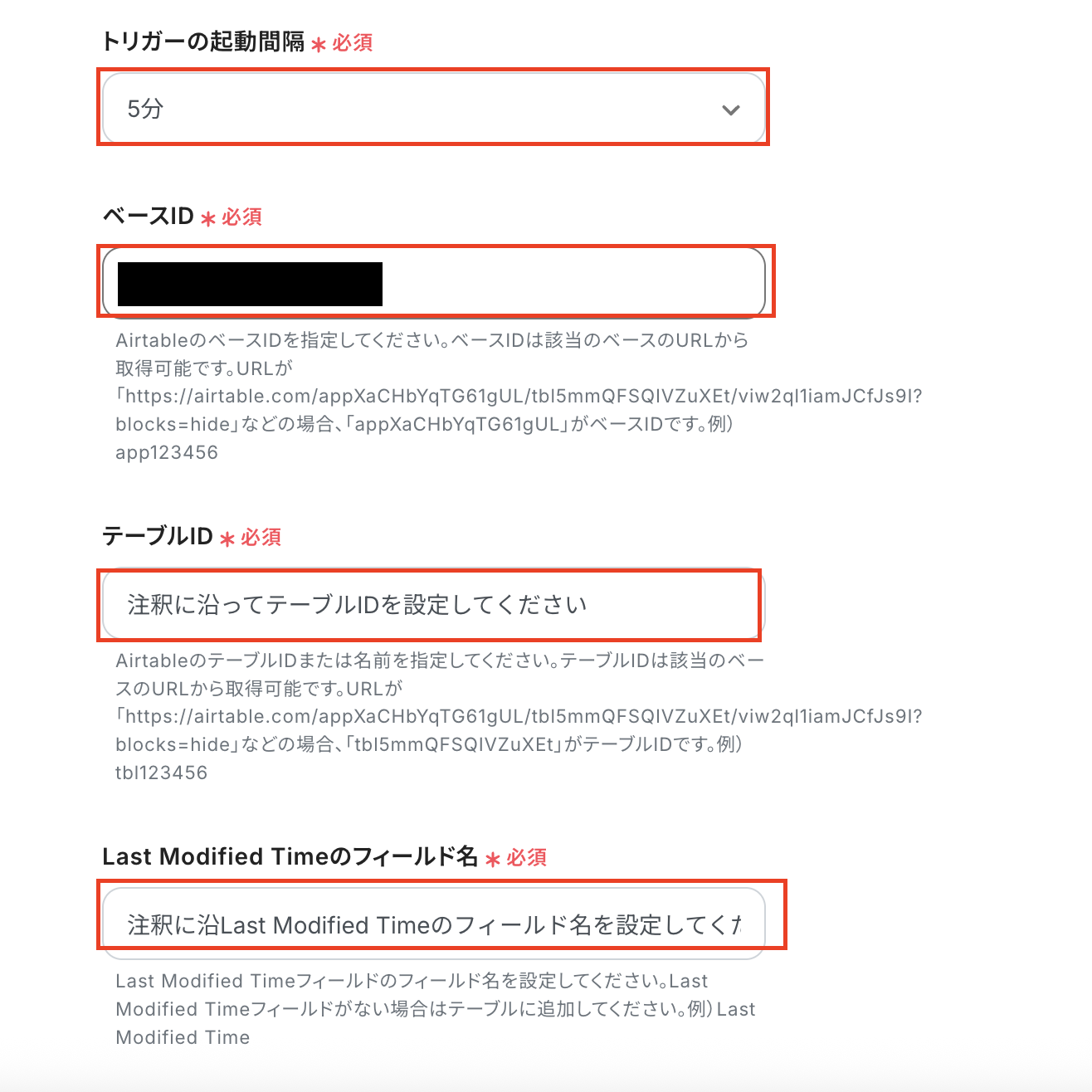 ベースIDとテーブルIDはAirtableのURLから取得し、入力しましょう。
