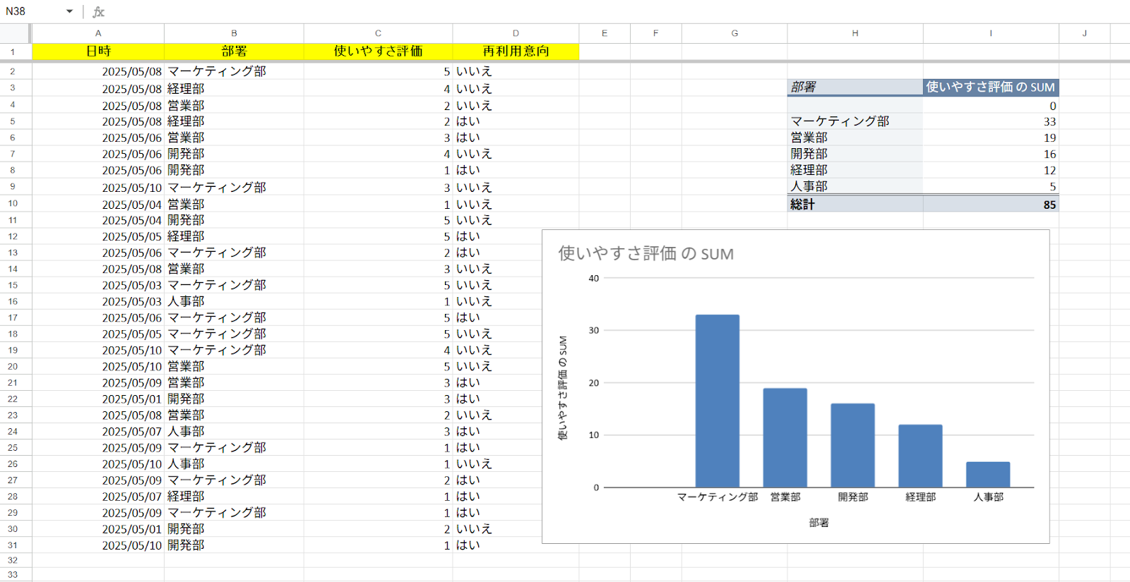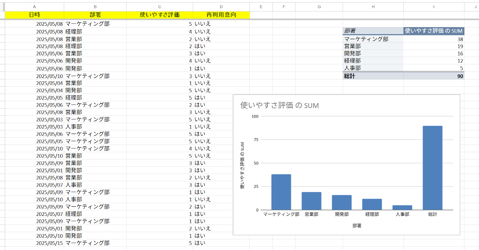 Google スプレッドシートの画面でもチャートがちゃんと更新されているか確認しておくと安心です!