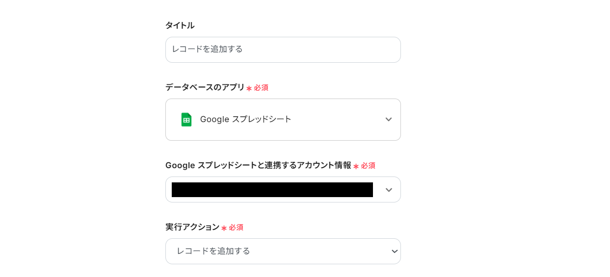 アクションは「レコードを追加する」を選択しましょう。
