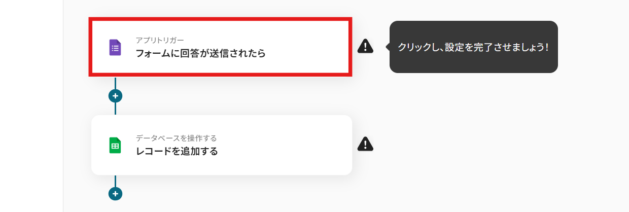 まず、一番上の「フォームに回答が送信されたら」のアイコンをクリックします。