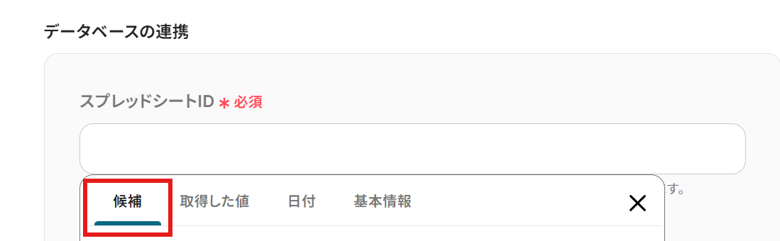 各項目は入力欄をクリックすると、Googleフォームから取得した情報を引用できます。