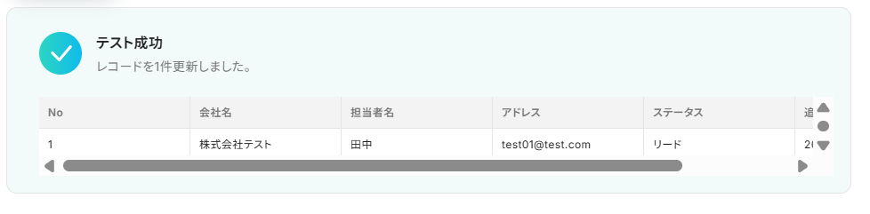テストが成功したら、対象のGoogle スプレッドシートが更新されているか確認してください。