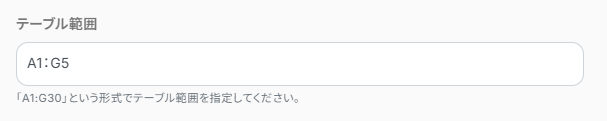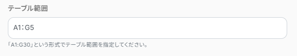 テーブル範囲を入力してください。対象のシートの範囲を入力するイメージです。