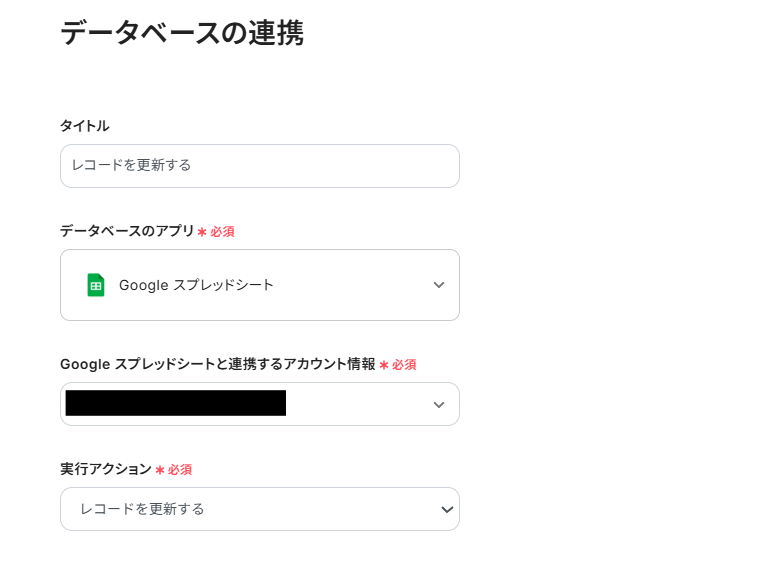 データベース操作の詳細設定を行います。更新したいレコードの条件を以下のように設定しましょう。