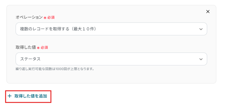 追加の際は左下の「+取得した値を追加」から追加をしてください。