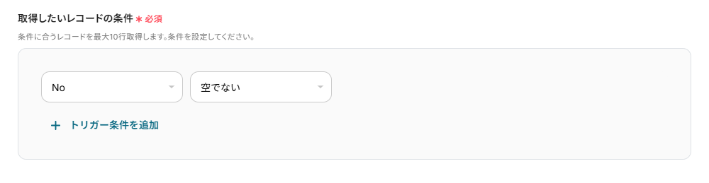 取得したいレコードの条件を指定していきます。「空でない」を指定してください。