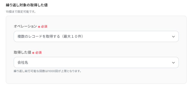 ・「同じ処理を繰り返す」オペレーション間の操作は、チームプラン・サクセスプランでのみご利用いただける機能となっております。フリープラン・ミニプランの場合は設定しているフローボットのオペレーションやデータコネクトはエラーとなりますので、ご注意ください。