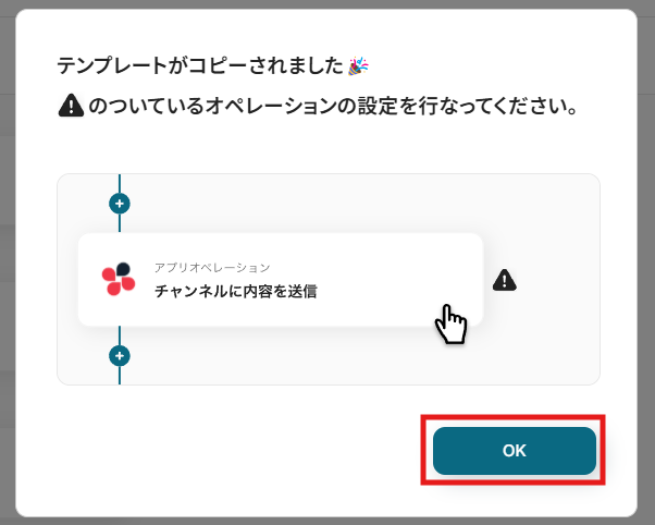 Yoomにテンプレートがコピーされると、次の画面が表示されるので「OK」を押します。