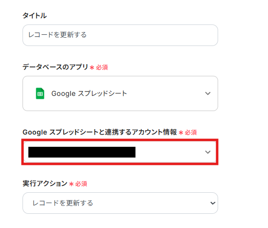 (2)「Google スプレッドシートと連携するアカウント情報」で運用したいGoogle スプレッドシートのアカウント情報を選択します。