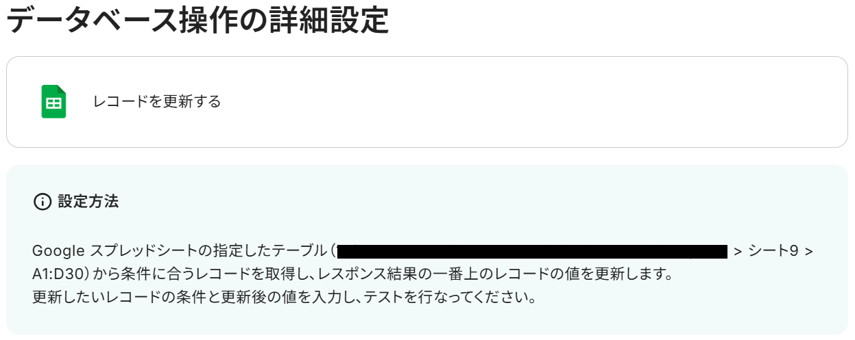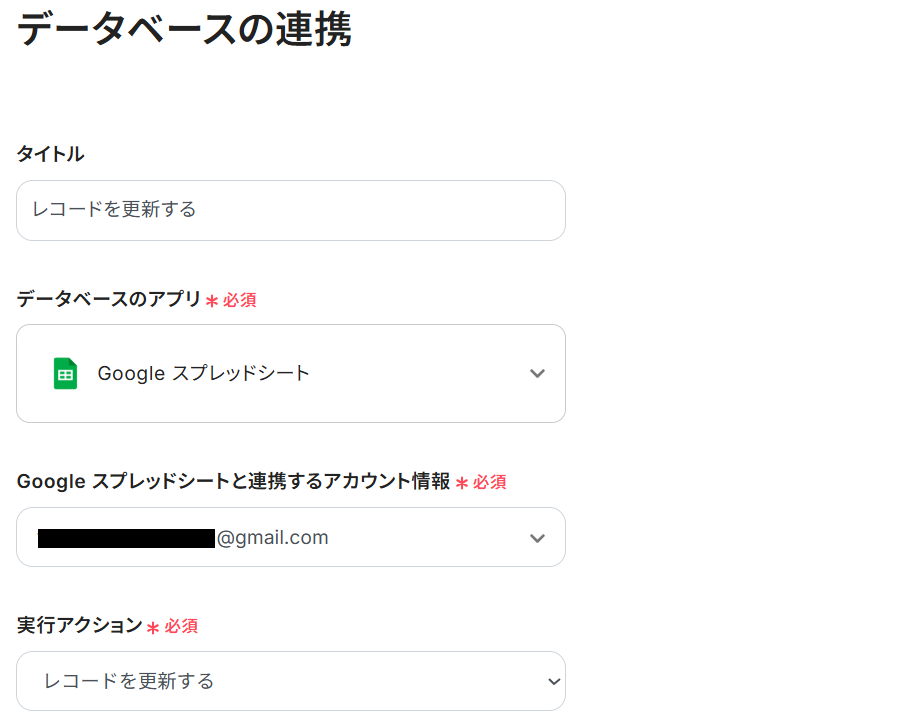 用意できたらYoomの設定画面に戻り、「レコードを更新する」をクリックしてください。