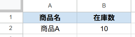 こちらも始めに、在庫管理に使うシートを用意してください。今回は例として、更新前の在庫数を15としています。