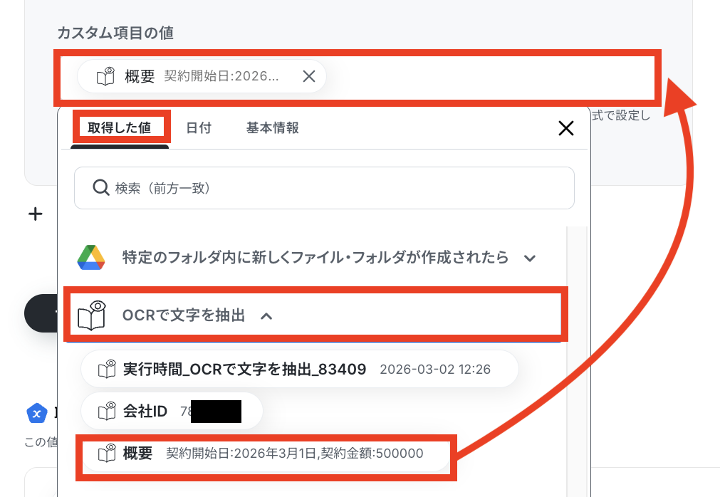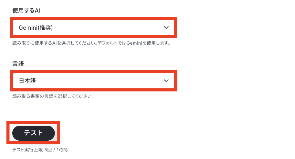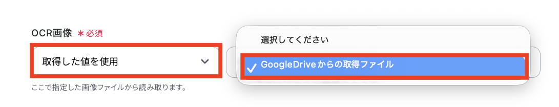 - OCR機能の設定では、画像やPDFファイルから読み取りたいテキスト項目を任意で指定することが可能です。