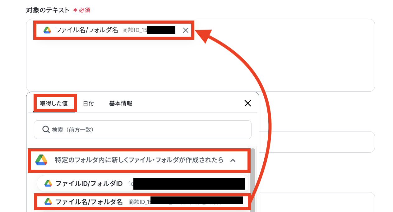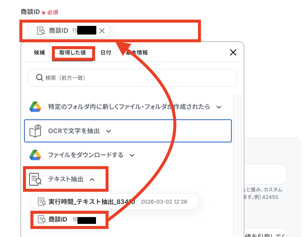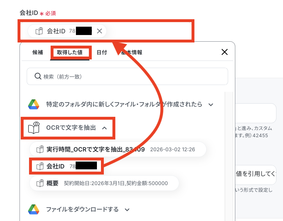 今回は「会社ID」はPDFの文章内に、「商談ID」はファイル名に記載しています。