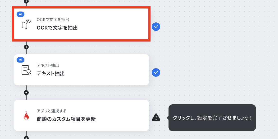- OCRまたは音声を文字起こしするAIオペレーションはチームプラン・サクセスプランでのみご利用いただける機能となっております。フリープラン・ミニプランの場合は設定しているフローボットのオペレーションはエラーとなりますので、ご注意ください。