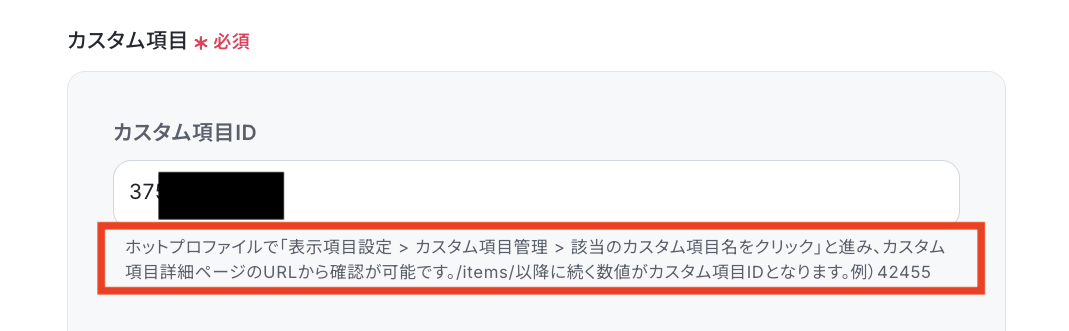 - ホットプロファイルの設定では、前段のオペレーションで取得した値を引用し、更新したい任意のカスタム項目に自由に設定してください。