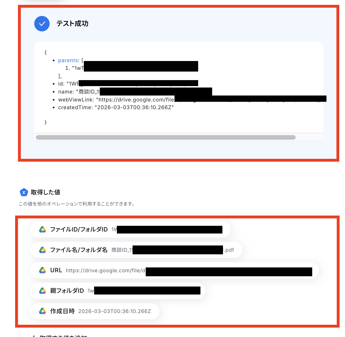 「ファイルID」はステップ3で取得した値を埋め込みます。