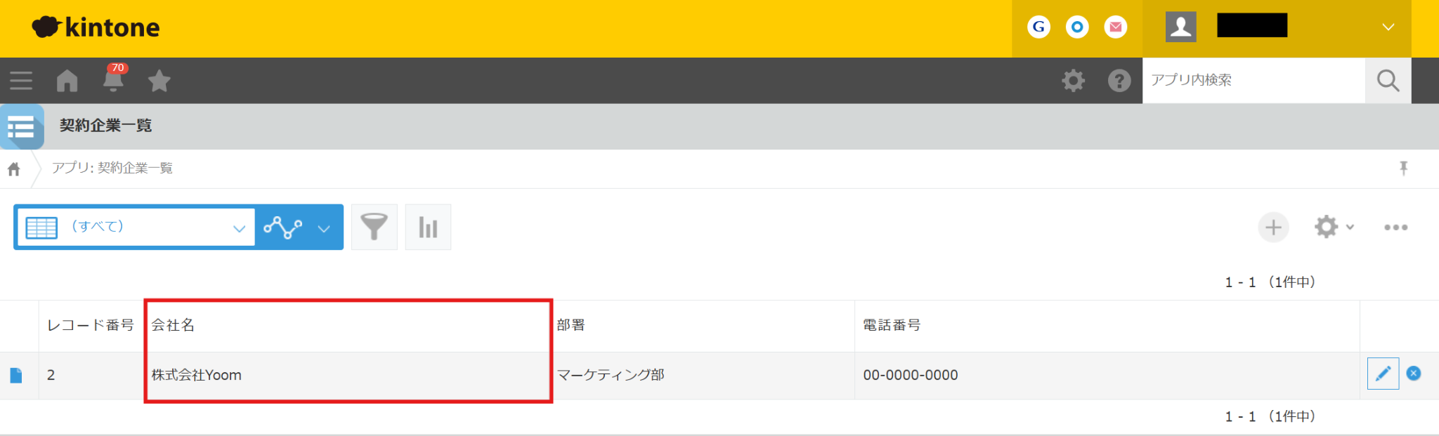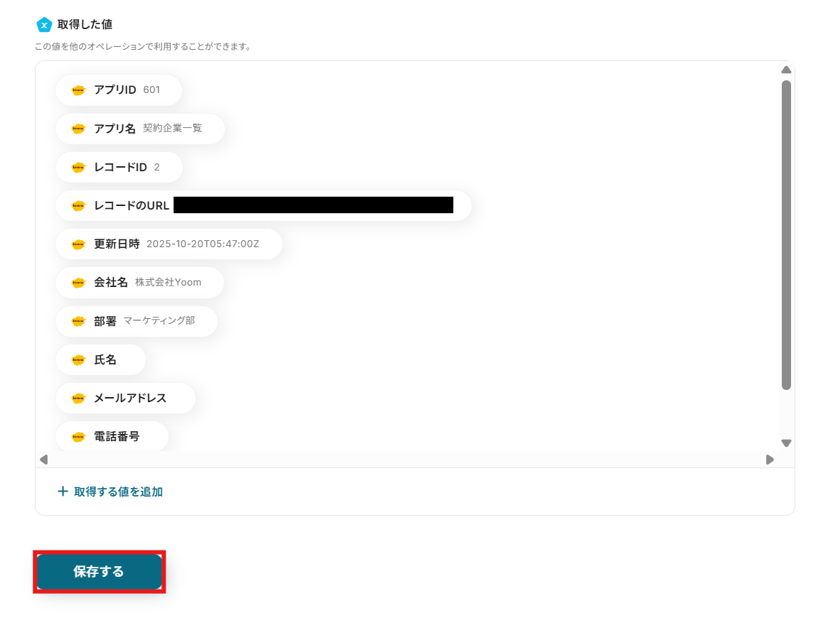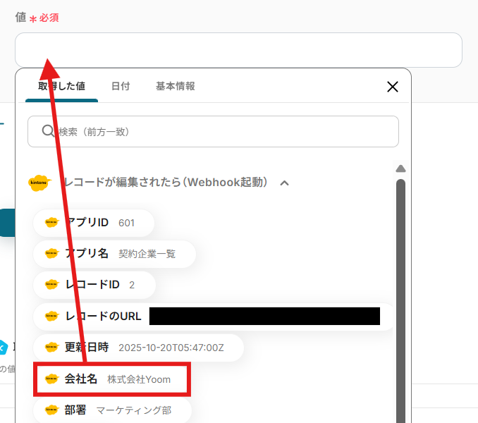 こちらもkintoneに合わせて会社名が「株式会社Yoom修正前」から「株式会社Yoom」に自動で置き換わるように設定していきます。