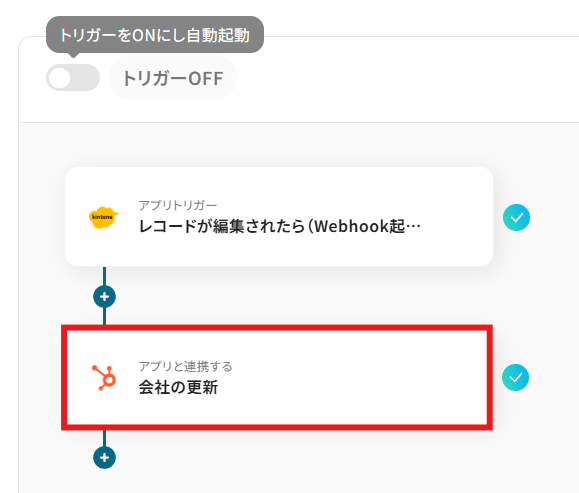 kintoneなどのデータベースやCRMサービスでレコード情報が更新された際に、HubSpotの会社情報も自動で更新するフローです。