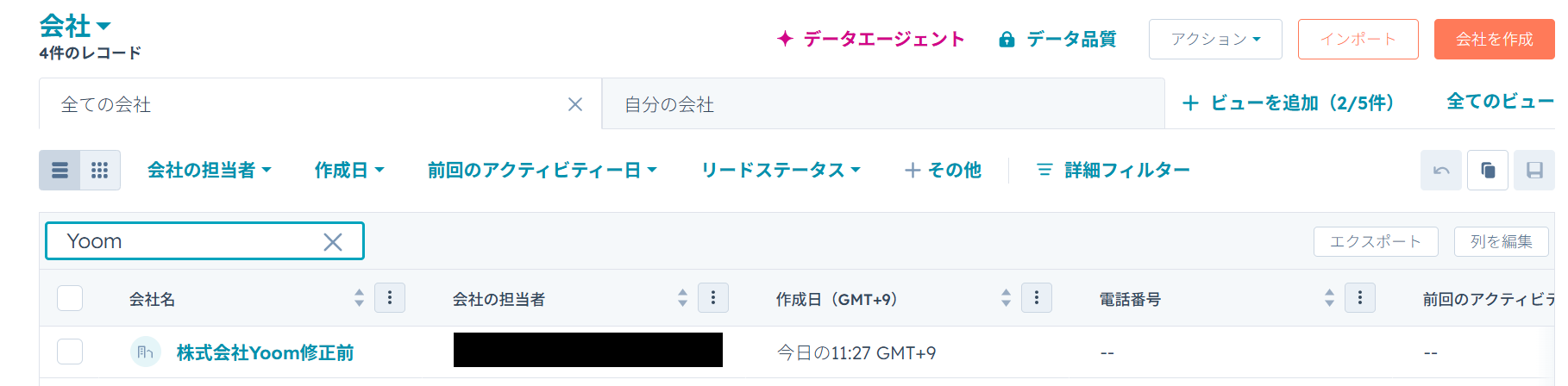 今回はテスト用に会社名を「株式会社Yoom修正前」から「株式会社Yoom」に変更しています。