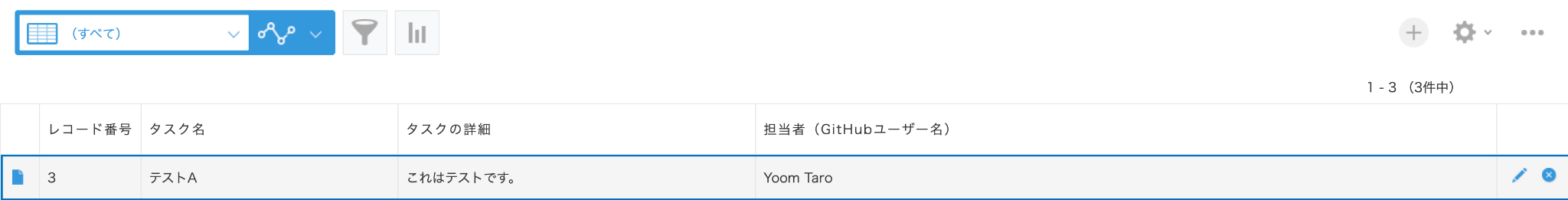 今回は以下の「テストA」のレコードを更新しました。