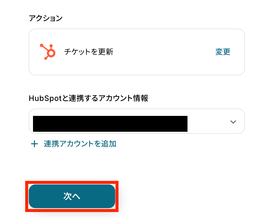 ステップ5:HubSpotのアクション設定