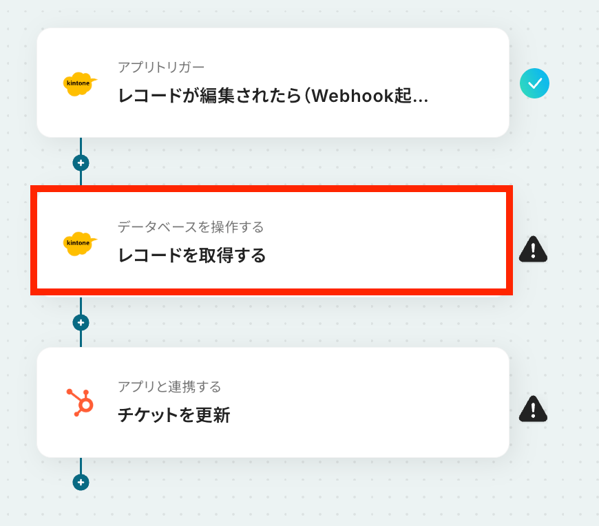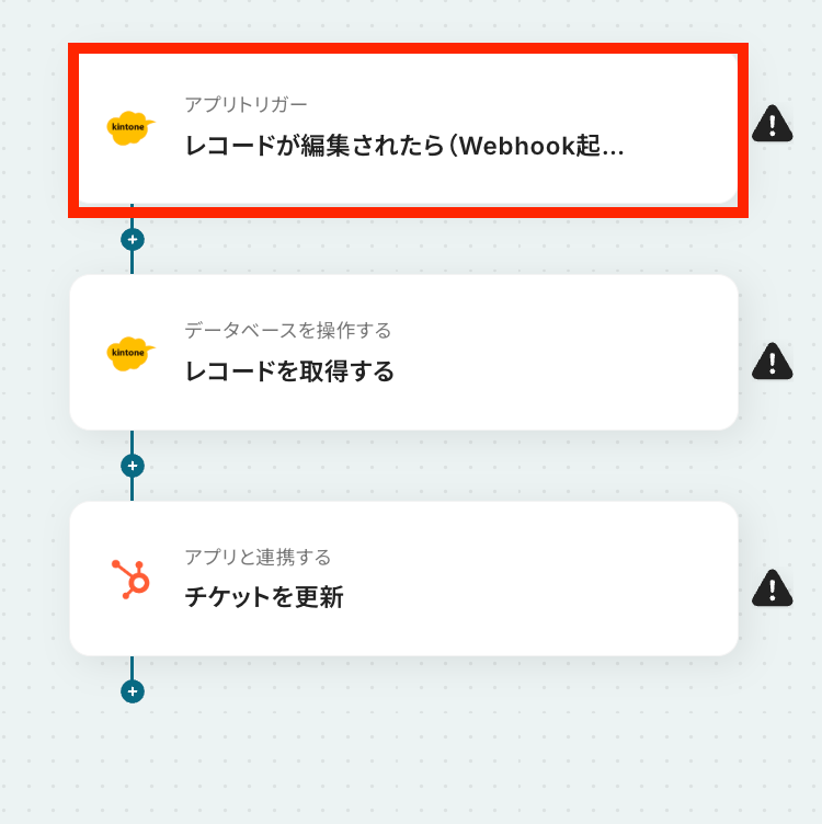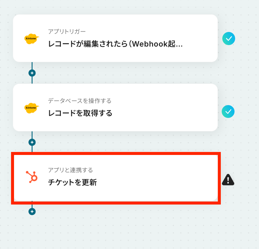 このワークフローを活用すれば、kintoneのレコードが更新された際に、関連するHubSpotのチケットを自動更新する仕組みを構築できます。