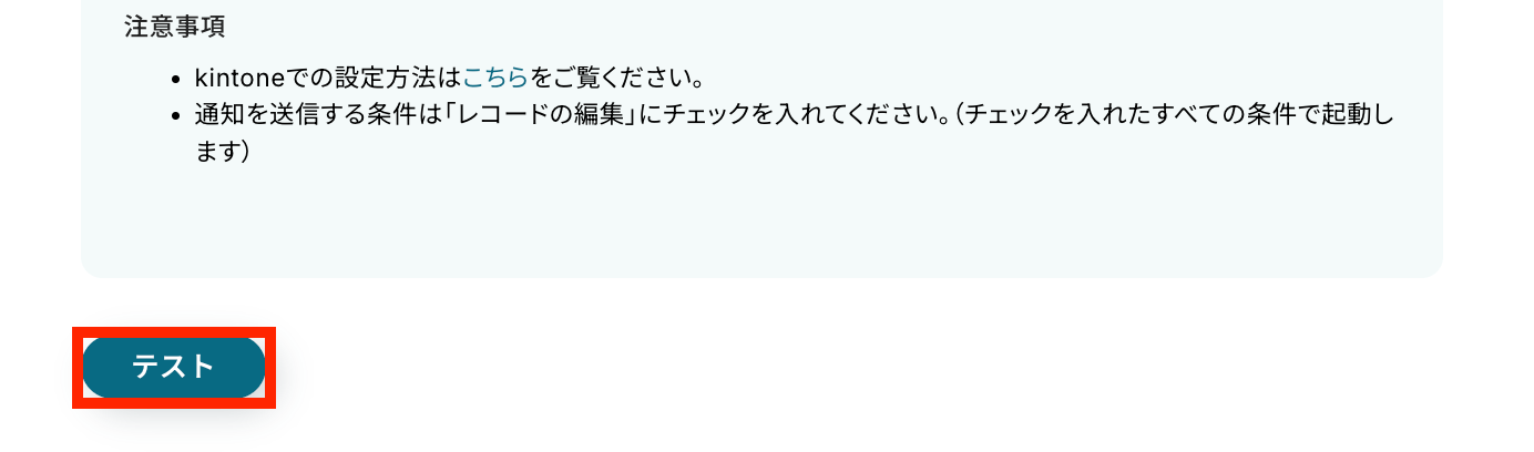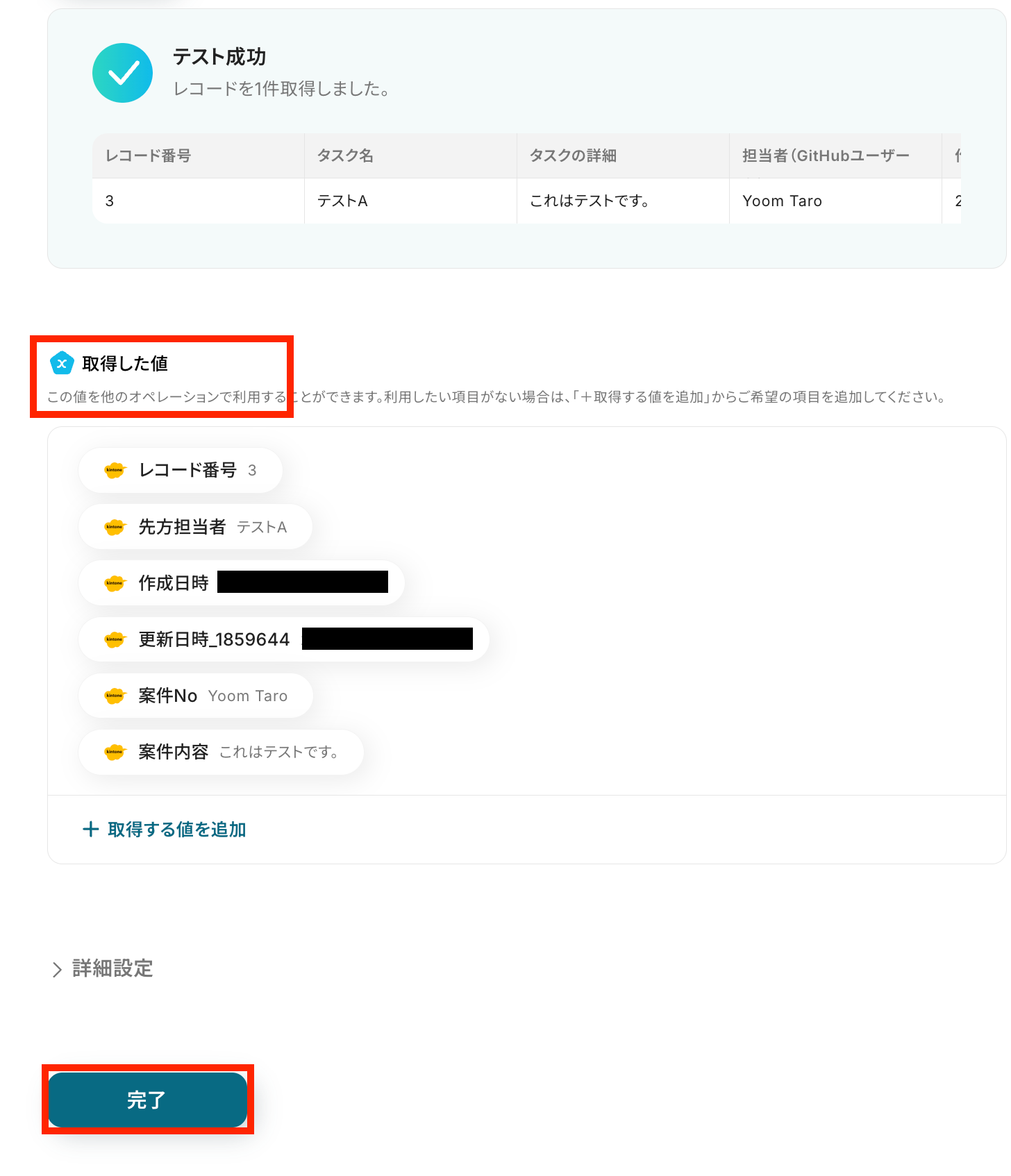 Yoomの設定に戻り、テストを実行します。