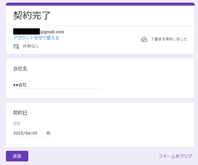 Googleフォームに送信した会社名と契約日が、既にこのアプリに入力されている前提です。
