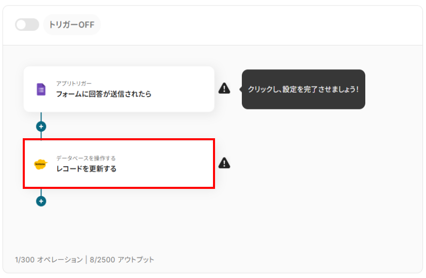 1.トリガーの選択 続いて、kintoneのレコード更新の設定を行うので下記画像の赤枠をクリックしてください。