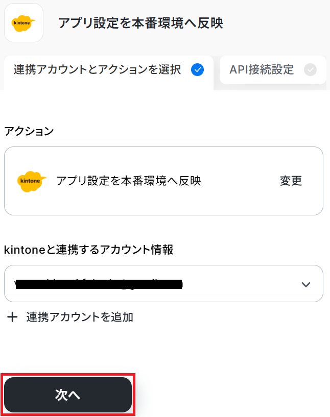 ステップ3・4と同様、アクションは「アプリ設定を本番環境へ反映」のまま「次へ」をクリックします。