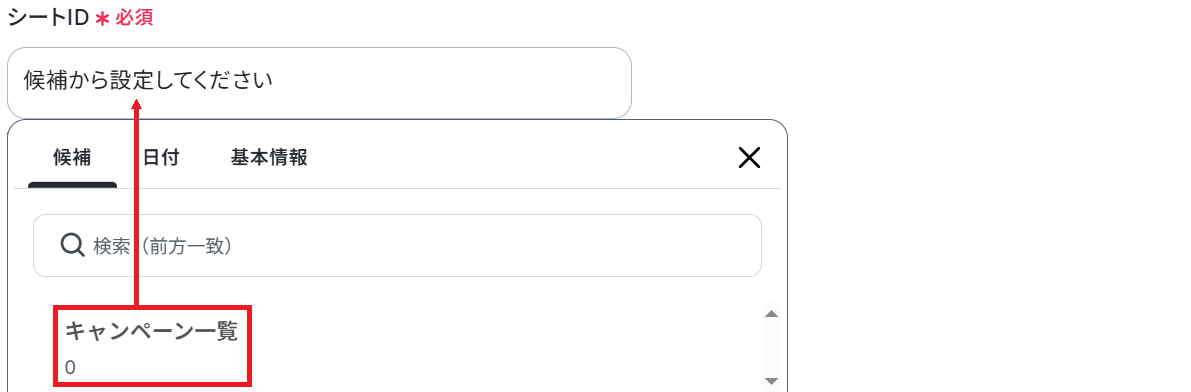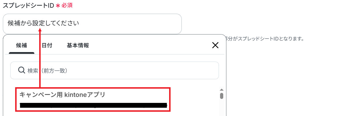 次に、連携するスプレッドシートID・シートID を候補から選択してください。