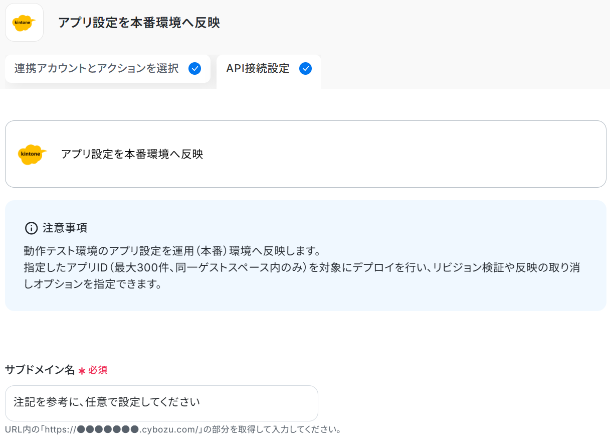 まず、テキストボックス下部の説明通りにサブドメイン名 を入力してください。