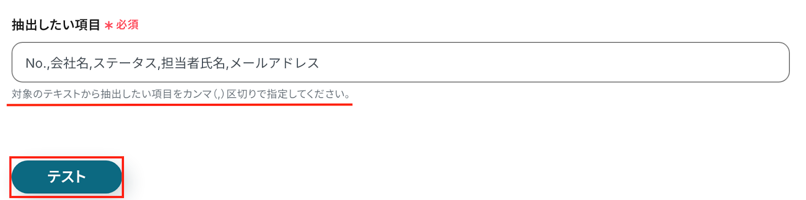 「抽出したい項目」は入力欄下の注釈を参照して、入力してください。