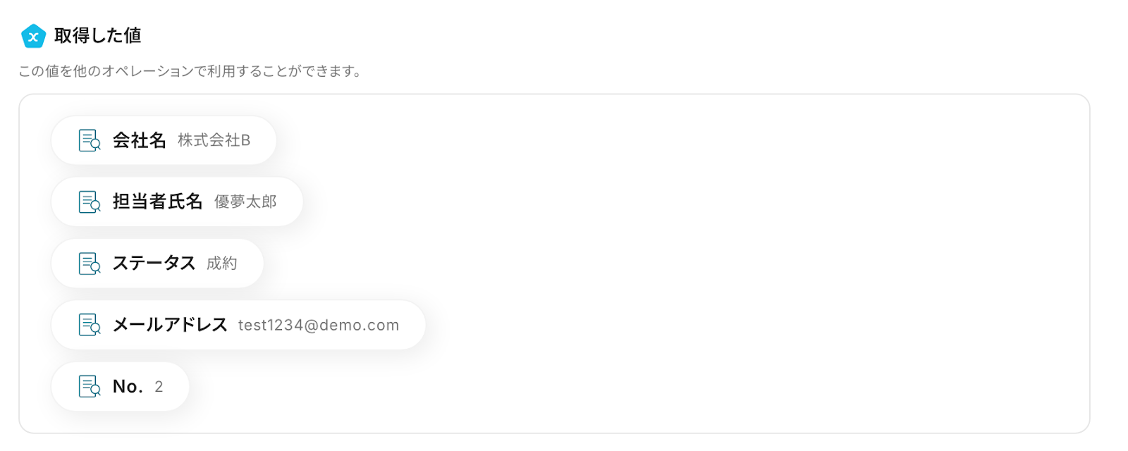 ・「取得した値」→メッセージテキスト
