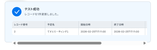 完了したら、Yoomにもどって「テスト」をクリックします。