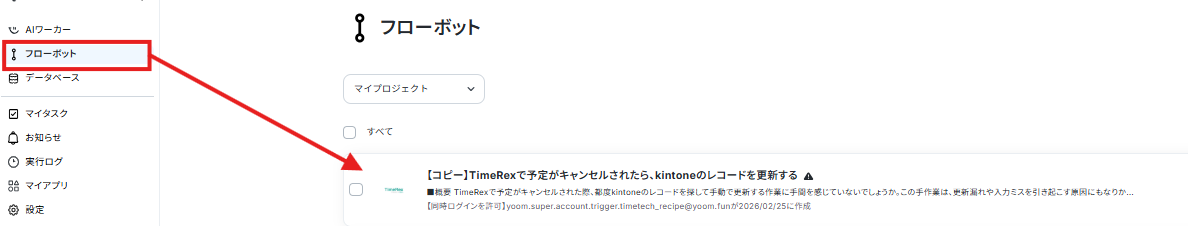 また、コピーしたテンプレートはフローボットに保存されているので、ここからも開くことができます。
