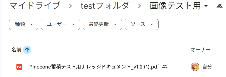 ここで連携したいGoogleDriveのフォルダにPDFファイルをアップロードします。