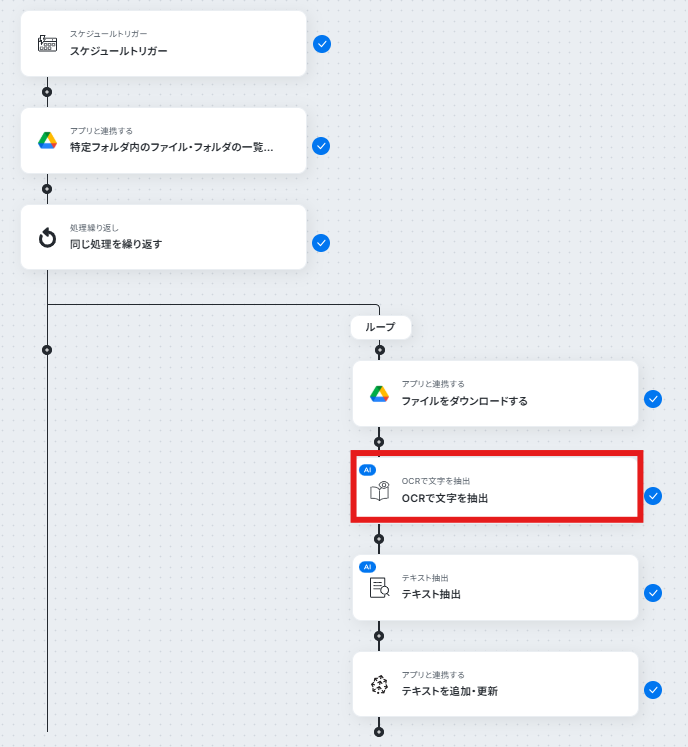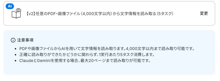 ※OCRまたは音声を文字起こしするAIオペレーションはチームプラン・サクセスプランでのみご利用いただける機能となっております。フリープラン・ミニプランの場合は設定しているフローボットのオペレーションはエラーとなりますので、ご注意ください。