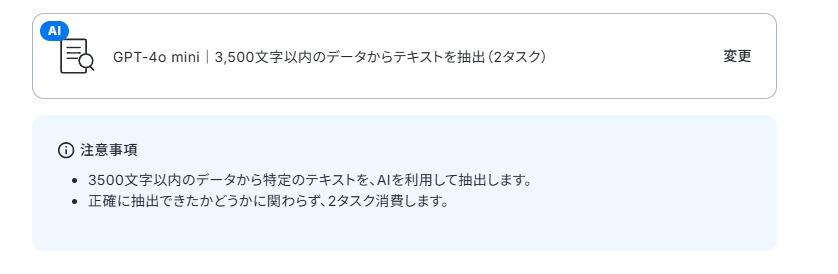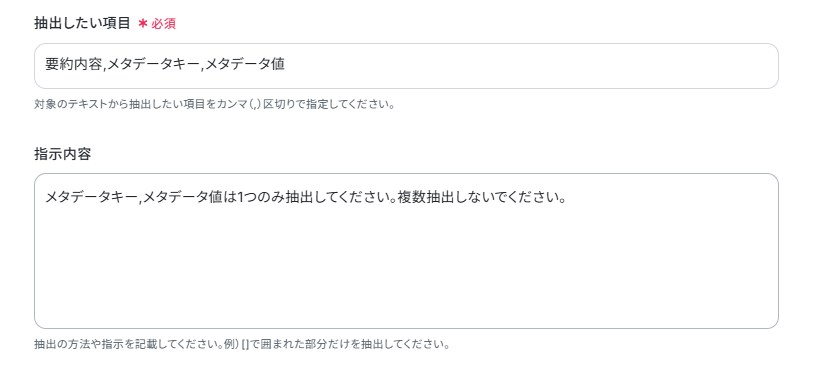 「抽出したい項目」「指示内容」はデフォルトで設定されていますので、今回はそのままにしています。