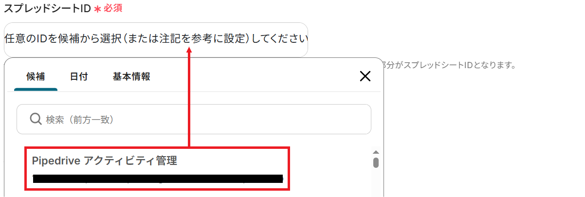 次に、連携するスプレッドシートID・シートIDを候補から選択してください。